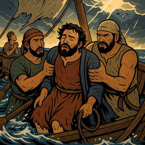 ‘Just pick me up and throw me into the sea… Then it’ll become calm for you. I know that these great swells have come upon you because of me.’