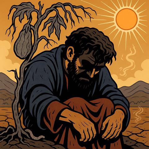 7But then, early the next morning, The God commanded a worm [to appear], and it attacked the [plant] and killed it, and [the plant] dried up. 8And just as the sun was rising, The God also commanded a scorching wind, and the sun beat down on Jonah’s head. He became so discouraged that he just wanted to resign from life.