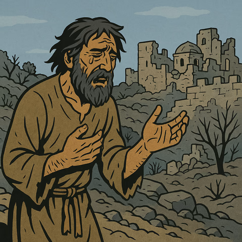 Like much poetic prophetic writing, the pronouns change around and make it confusing to see who is speaking. It may be that the devastated city of JeruSalem herself is ‘speaking’ in places. We’ve guessed exactly where these parts begin and end, formatting the text accordingly. We may not have these 100% right, but we’ve tried our best.