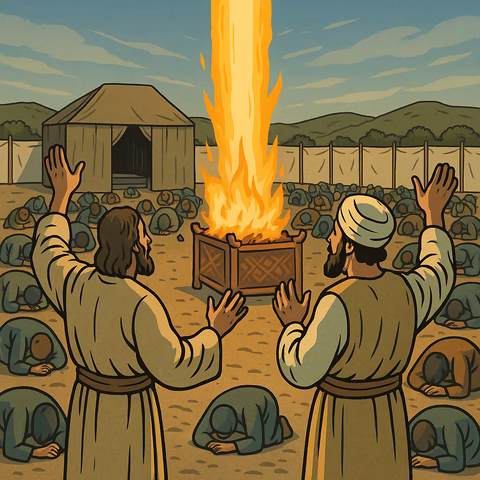 [Editor note: Leviticus begins with an extensive description of the different sacrifices. The story resumes at Leviticus 9:22.]