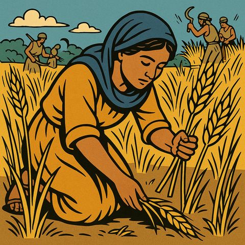 ‘Please, may I collect grain here… I’ll just follow behind those who are doing the harvesting.’
